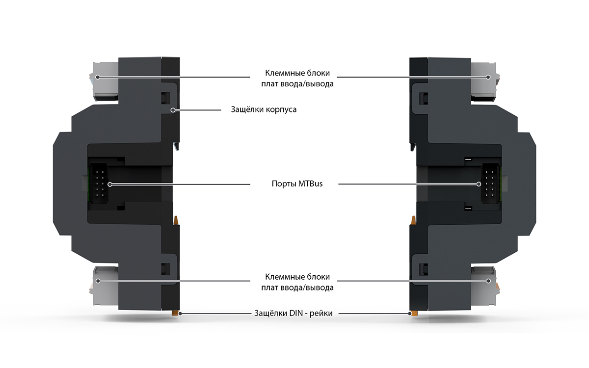 Интерфейсы | Левый порт MTBus Подключение: к головному устройству, к предыдущему MRL, Кабель: MRL.2034-001 , Правый порт MTBus Подключение: для следующего MRL, Кабель: MRL.2034-001 |